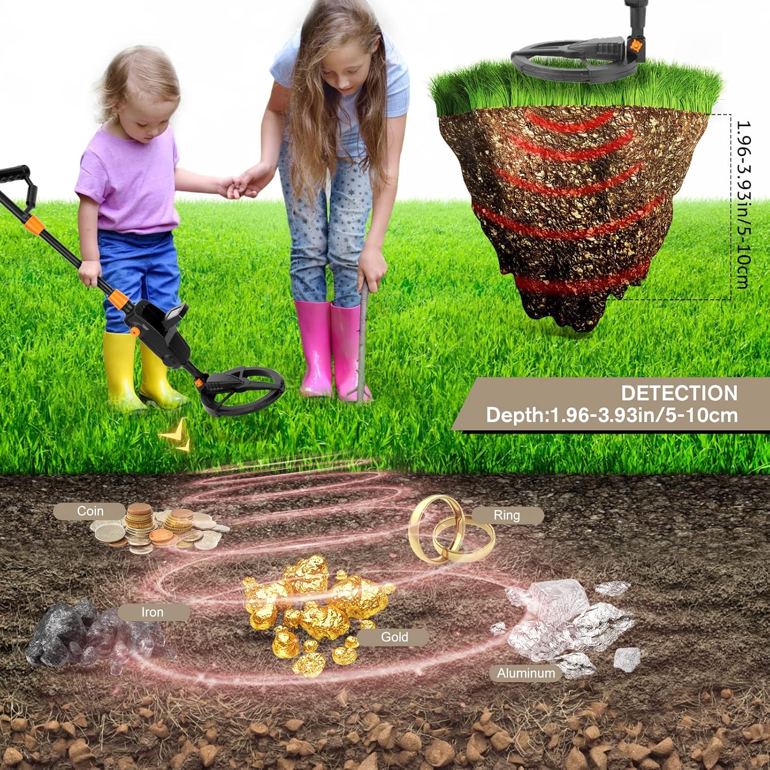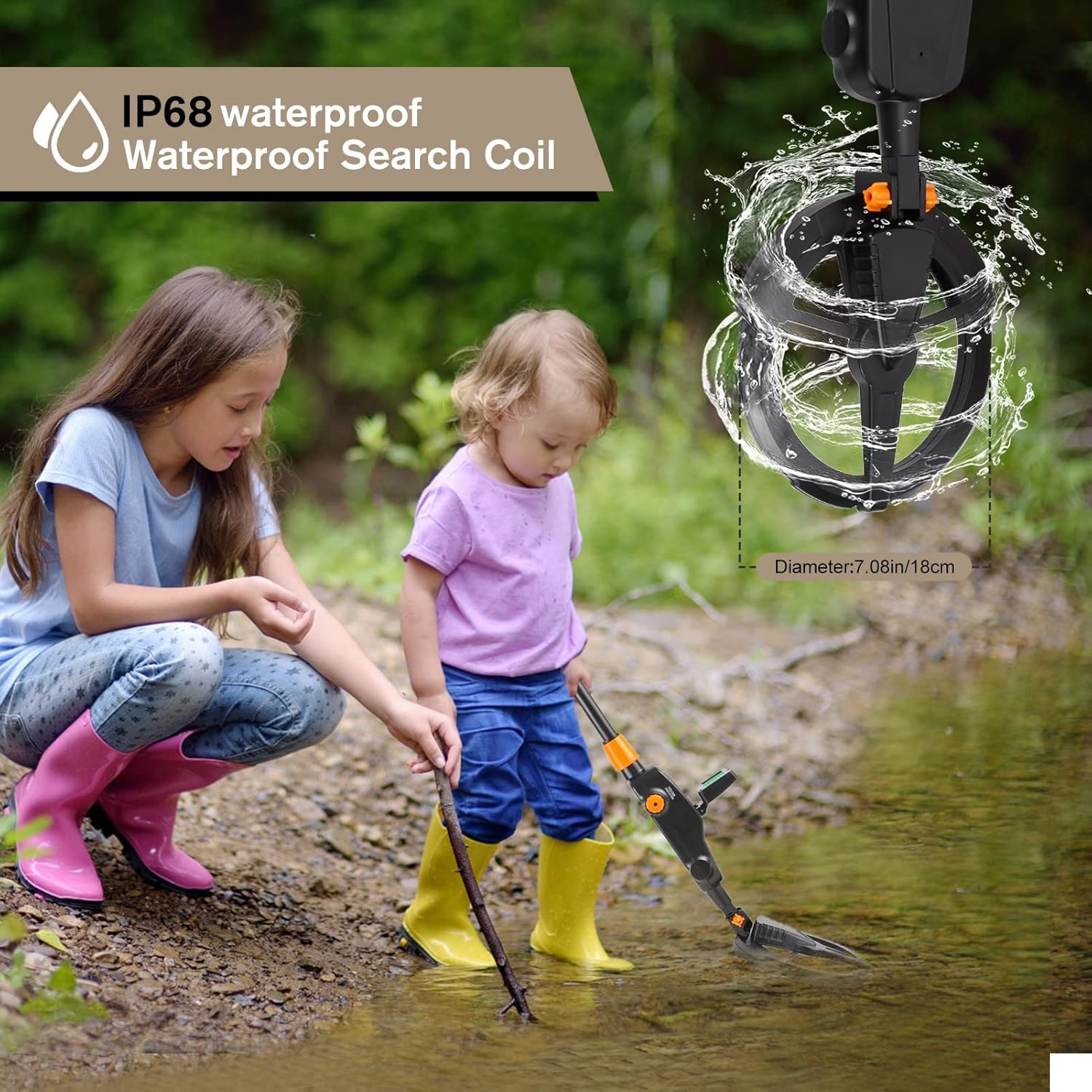 Detector de Metales Liviano para Niños con Bobina de Búsqueda a Prueba de Agua, Detector de Metales para Exterior Ajustable de Alta Sensibilidad con LCD e Sonido para Principiantes en Buscador de Oro