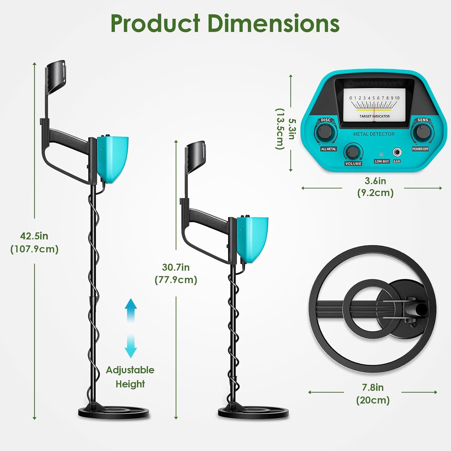 Acerca de este producto 【Múltiples Modos de Detección】El modo totalmente metálico puede identificar diferentes tipos de metales, incluidas monedas, reliquias culturales, joyas, oro, cobre, plata, etc. El modo de discriminación puede proteger algunos metales de baja calidad que no desea que sean detectados y distinguir los metales de alta calidad que necesita. 【Bobina de Búsqueda Impermeable Extra Grande】La bobina de búsqueda de 7,5 pulgadas puede alcanzar con precisión una profundidad de 6 pulgadas bajo tierra y la detección de la bobina es sensible. La varilla ajustable y la bobina de búsqueda son resistentes al agua e ideales para diversas situaciones, como explorar la playa, el jardín, el bosque, la pradera o las montañas, así como buscar tesoros submarinos en ríos o en el mar. 【Pantalla de Alta Precisión】Modo de visualización del puntero, el valor es 0-10, que representa la intensidad de la señal de detección del metal objetivo. Una vez detectado, el dispositivo emitirá un pitido para avisarle que hay metal cerca. Cuanto más cerca esté la bobina del metal objetivo, más fuerte será la señal en el instrumento y más hacia la derecha se moverá la aguja. Es sencillo y el volumen y el estado de la batería se pueden ajustar de forma intuitiva. 【Batería Recargable Respetuosa con el Medio Ambiente y que Ahorra Energía】HIU utiliza una batería recargable más respetuosa con el medio ambiente y conveniente que se carga rápidamente y tarda aproximadamente 1,5 horas en cargarse. Se puede reciclar entre 800 y 1000 veces y el tiempo de uso único es de 16 a 20 horas. ¡Observar! La batería debe estar completamente cargada cuando se utiliza por primera vez. 【Buena Opción para Deportes al Aire Libre】El peso del detector de metales es de solo 2 libras. Puede ajustar la longitud del detector para facilitar su uso (máx.: 108 cm/42,5 pulgadas; mínimo: 78 cm/30,7 pulgadas). El detector es extraíble y portátil y tiene un conector universal para auriculares de 3,5 mm, por lo que puede conectar otros auriculares (no incluidos) al detector de metales y ajustar el volumen para adaptarse a sus diferentes entornos.